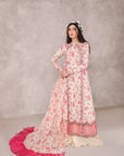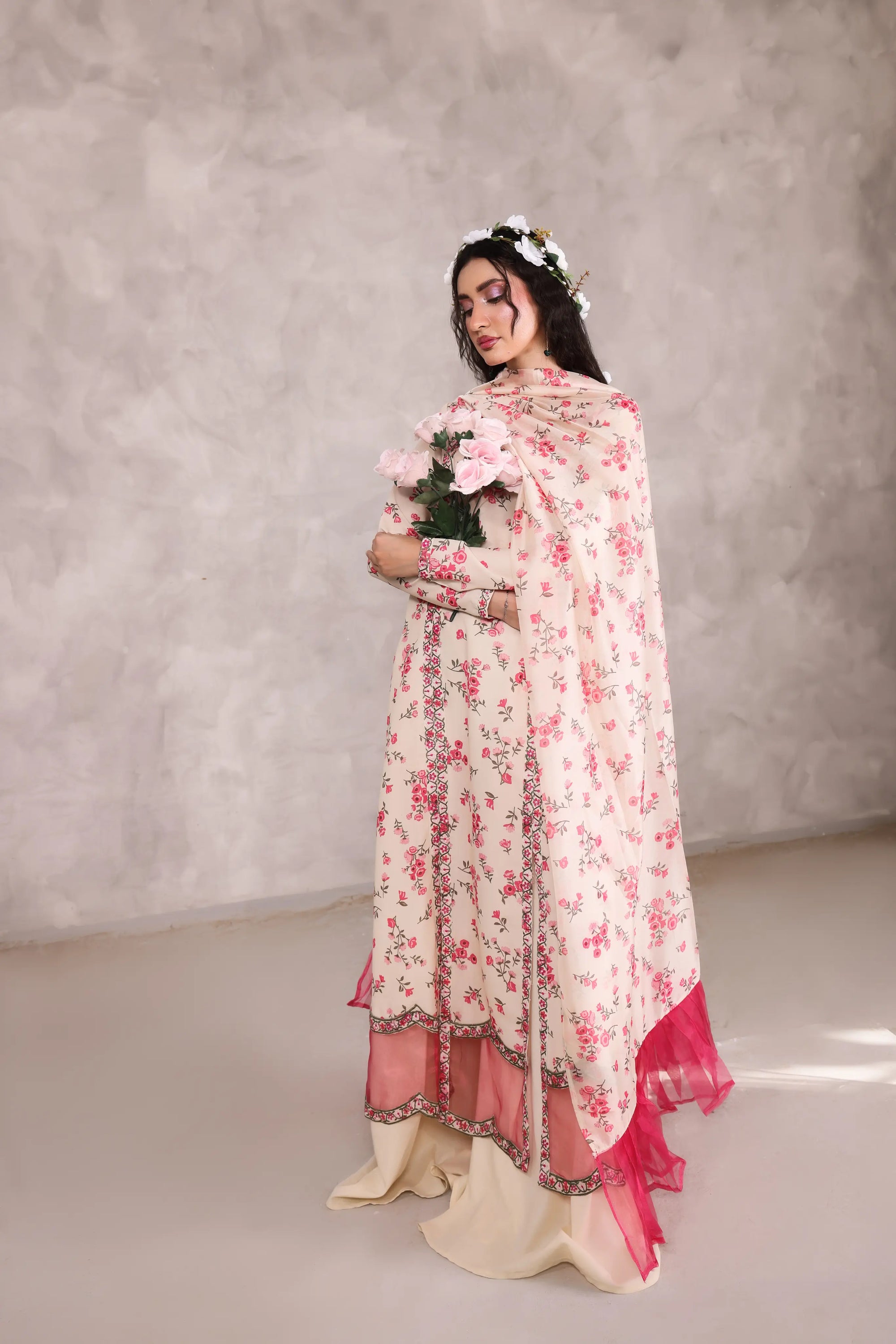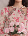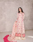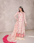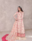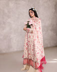 Dahlia is a 3-piece floral set featuring a fully embroidered shirt with cutout neckline and cutwork on daman. It comes with a lawn bottom and a printed silk dupatta for a graceful look.