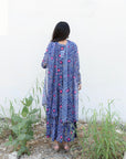 This three-piece set features a stunning chiffon shirt with a chak open kalidaar frock cut. The neckline and sleeves are beautifully embellished with intricate mirror work, adding a touch of sparkle. Paired with a matching cotton silk bottom and inner.