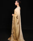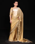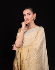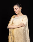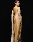 Golden Muse is a vision of radiance. With ombré gold tones flowing seamlessly through Finest silk, this saree reflects light like a dream. Rhinestones are delicately scattered across the fabric, giving it an ethereal sparkle. The blouse is finished with a graceful fit a modern take on regal beauty.