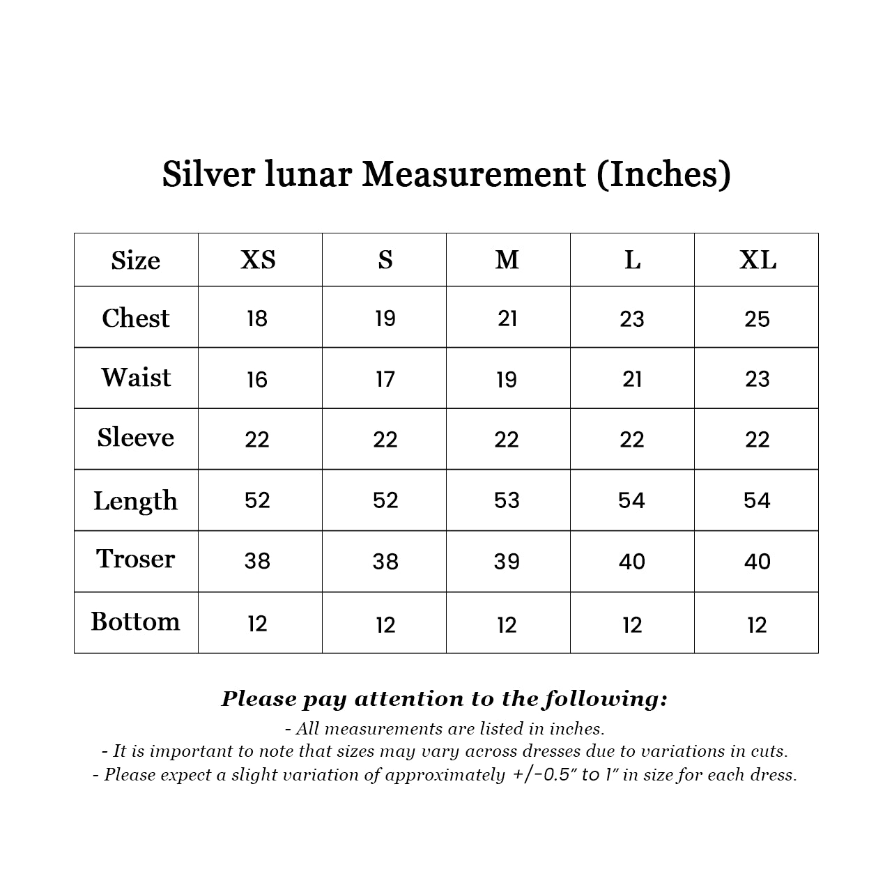The Silver Lunar Set is a vision of elegance, crafted in lustrous tussle silk. This graceful kalidaar frock is adorned with beautiful hand embroidery on the neckline and sleeves, paired with culottes detailed with adda work. The medium silk dupatta glistens with stone work, completing the look. A sophisticated three piece ensemble that radiates timeless charm.